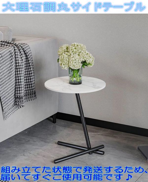 > 丸サイドテーブル 大理石調 白 ホワイト ミニテーブル コーヒーテーブル 軽い 組み立て済み ベッドルーム リビング サブテーブル ②