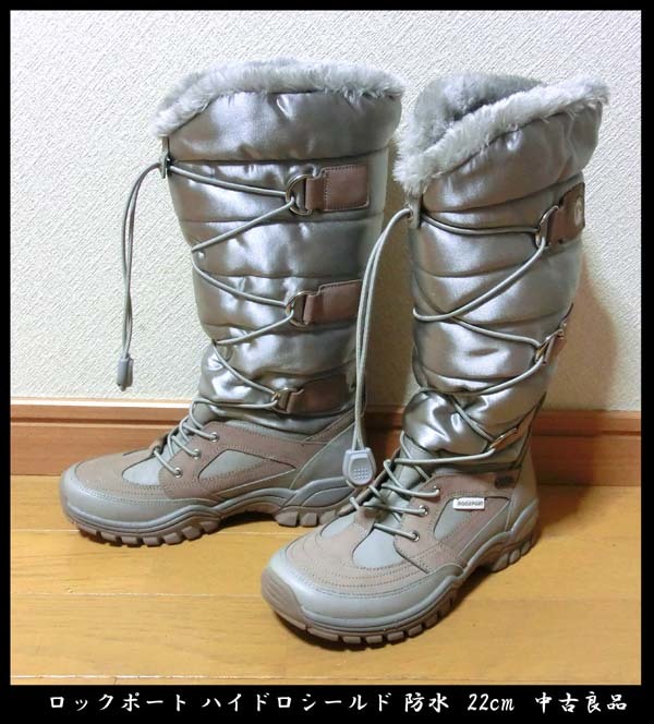 > ■ROCKPORT ロックポート ハイドロシールド 防水 ロング シューズ ブーツ スニーカー 22cm シルバー系 中古良品