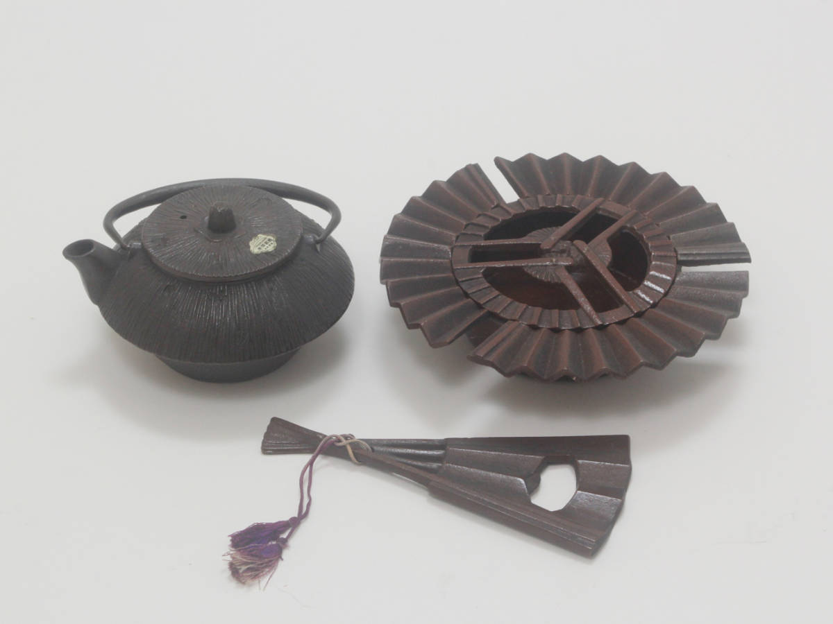 - ☆未使用☆ 南部鉄器 鉄瓶 栓抜 灰皿 セット 扇