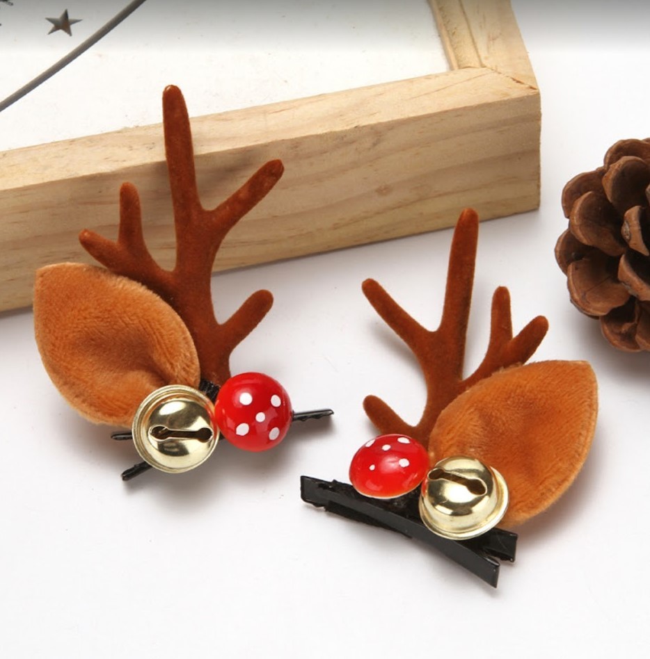 - クリスマス 枝角 ベル キノコ ヘアクリップ 2個セット ヘアピン前髪