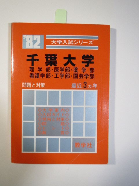 - 赤本 教学社 千葉大学 理系 医学部 理学部 等 1982 (3年分掲載)(昭和56~昭和54 掲載)(掲載科目 数学 理科 小論文 適性検査)