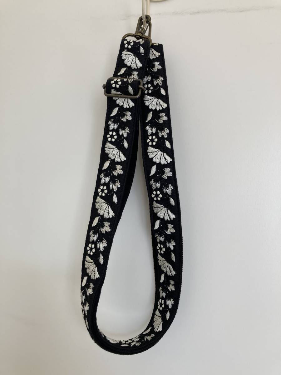 - (新品)花柄刺繍入りストラップ ショルダーバッグ 黒白