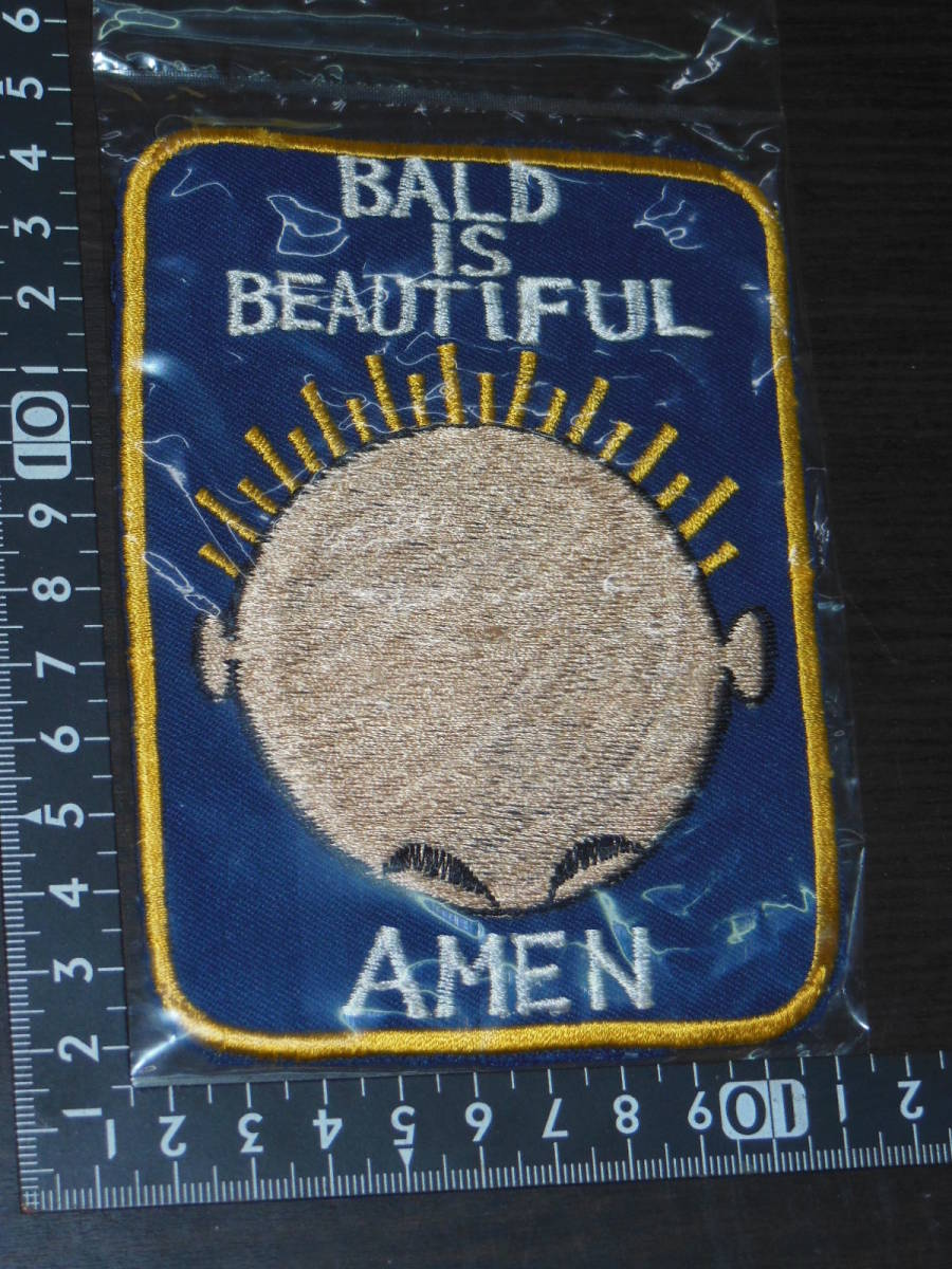 - 刺繍ワッペン BALD IS BEAUTIFUL AMEN ハゲは美しい アーメン