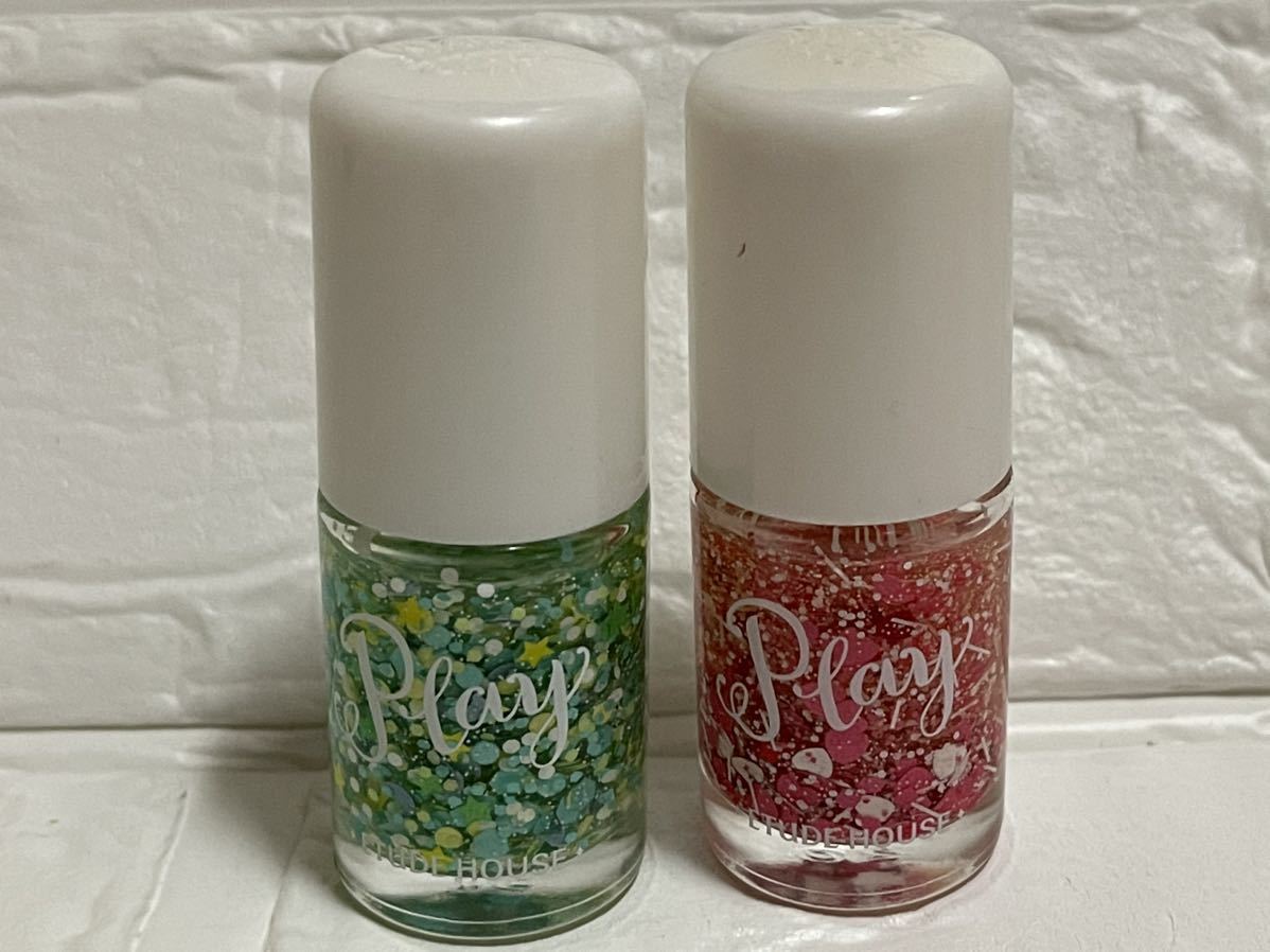- 韓国コスメ☆エチュードハウス マニキュア ネイル 爪 ラメ入り ホログラム 星 ハート 計2本 ネイルポリッシュ
