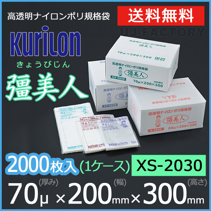 > 【送料無料】彊美人 70ミクロン XS-2030 ナイロンポリ袋/真空袋 (厚み 70μ×幅 200×高さ 300mm)【1ケース/2000枚】五層構造・三方規格袋