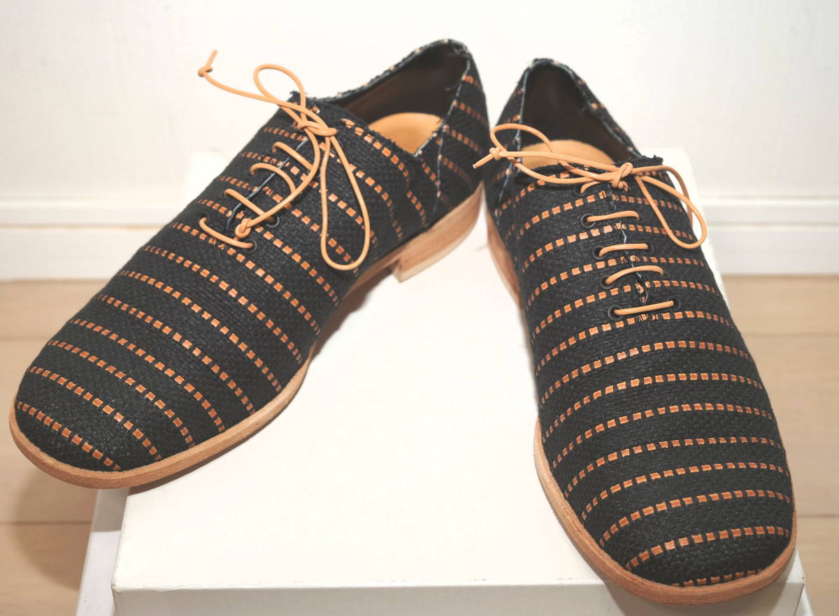 - 美品 定価94600円 PETROSOLAUM ペテロオラウム ラミー混ホールカットボーダーシューズ40黒×茶 日本製