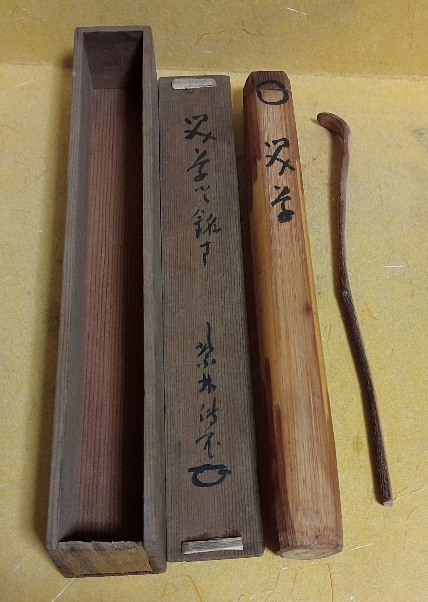 - 紫林 古木 竹茶杓 在銘 紫林箱書花押 花押 共箱 共筒 検 裏千家表千家江戸千家不白流不昧流石州流庸軒流遠州流 茶道具
