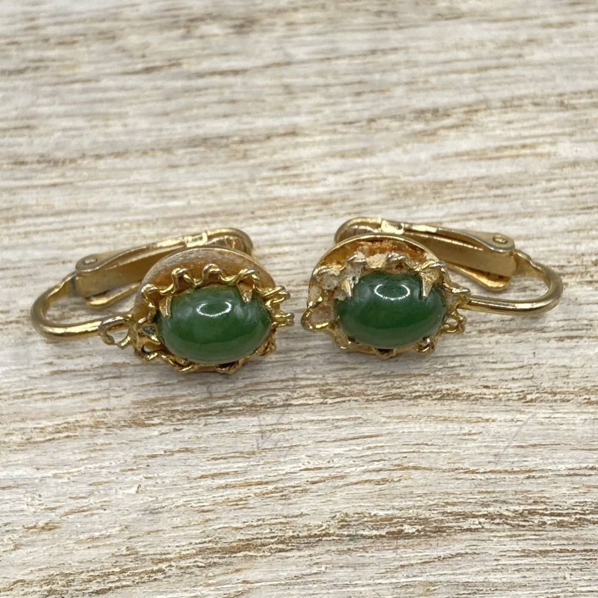 - 送料無料 US ヴィンテージ イヤリング グリーンストーン