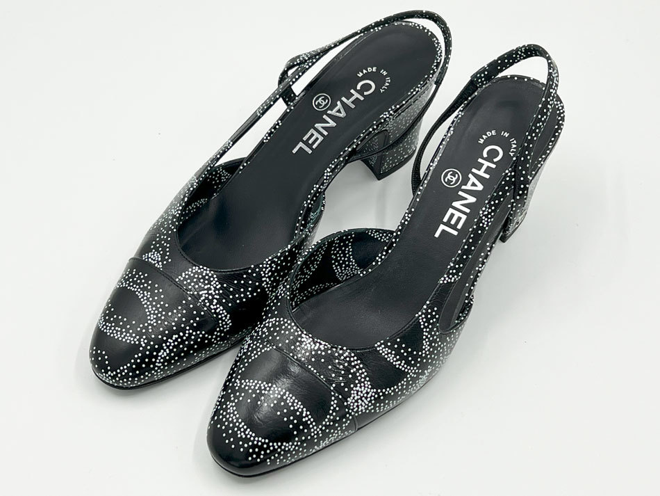 > シャネル レディース パンプス 靴 スリングバックスシューズ プリンテッド カーフスキン 37.5 23K G31318 B14610 NS458 美品