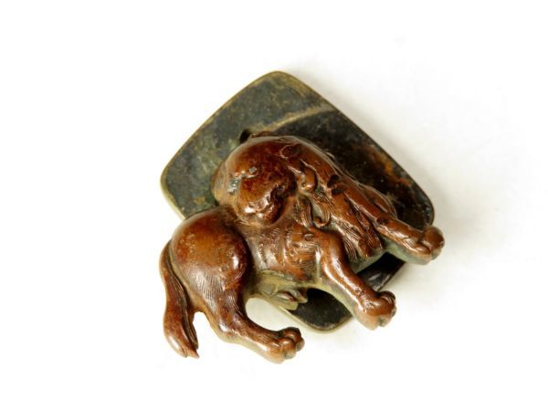 - 【6482】提げ物 (江戸~明治 オリジナル) 銅製 犬 彫金 金具(初品・買取品)
