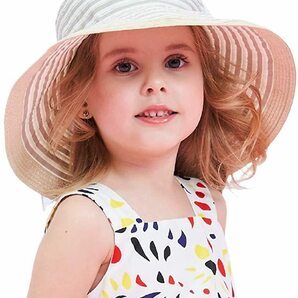 > 【未使用】(コネクタイル)Connectyle キッズ 麦わら帽子 蝶結び 日焼け止め つば広 UVカット 女の子 折りたたみ XXL【アウトレット】3510