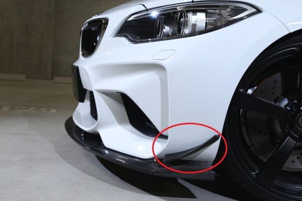 - 3Dデザイン BMW F87 M2 (1H30G) 2シリーズ フロントリップスポイラー用 カナード(単品) カーボン