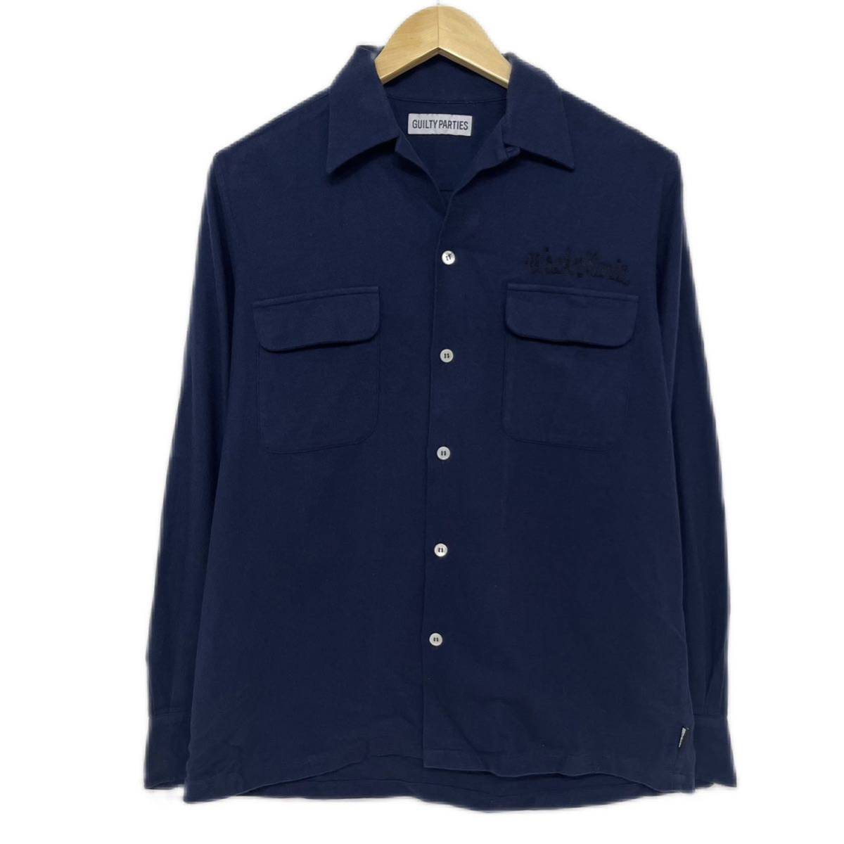 > (924) 美品 【 WACKO MARIA 】 チェーンステッチ ボックス オープンカラー シャツ S ネイビー SHIRT 開襟 刺繍 ワコマリア