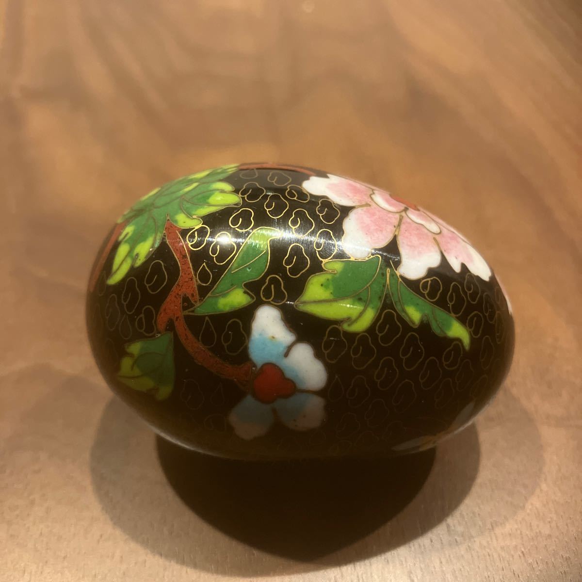 - タマゴ型 七宝焼き 骨董 コレクター アンティーク 蚤の市 花柄 インテリア 小物 キレイ 置物 工芸品