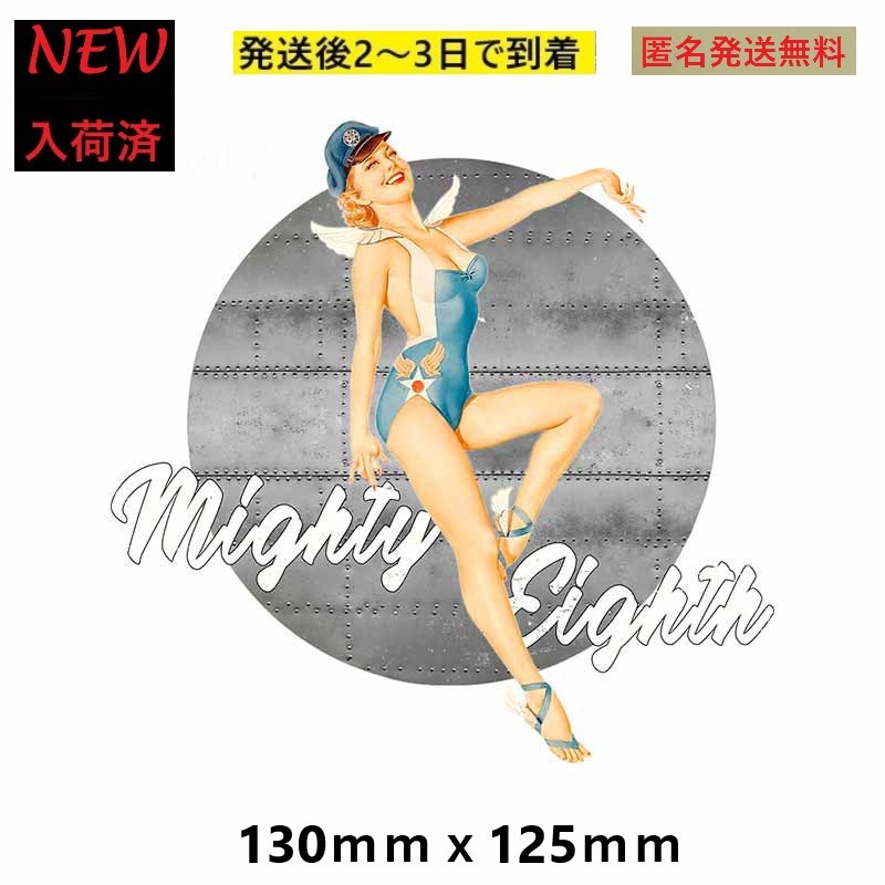 - 【匿名無料 ミリタリ♪MIGHTYEIGHTH130㎜x125㎜】アート ピンナップガール★セクシーガール★車のステッカー★アメリカ 空軍ステッカー