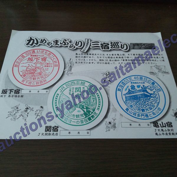 - JR西日本・関西本線・亀山ぶらり三宿巡り・記念スタンプシート(スタンプコンプ)