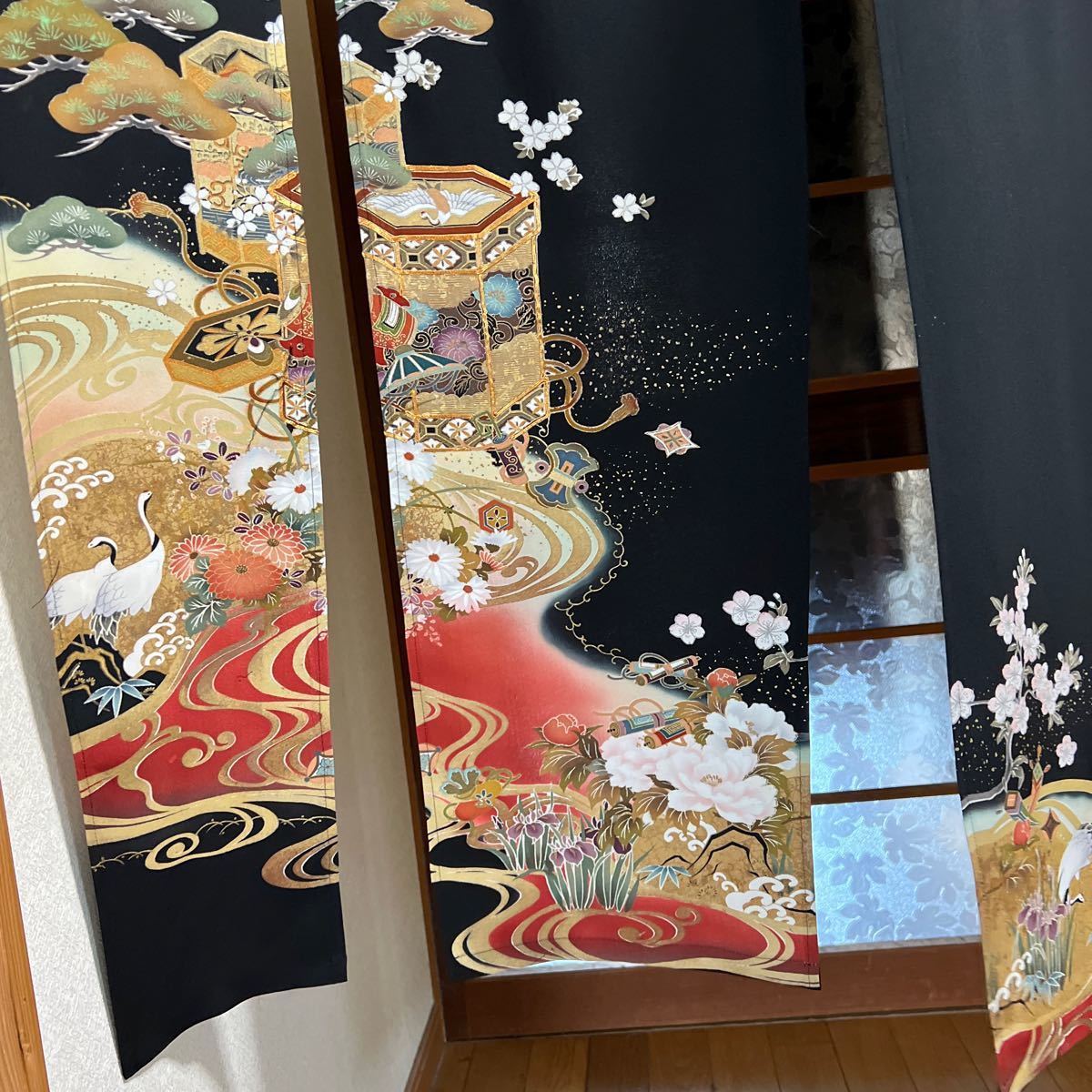 - 黒 留袖リメイクーのれんー暖簾~豪華な暖簾を、貴方のお部屋に!