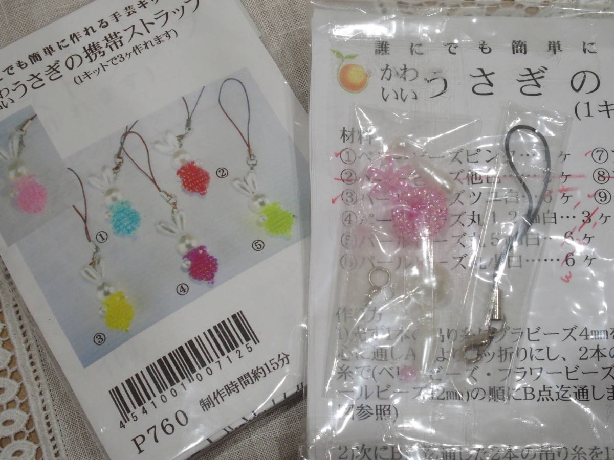 - (ピンク)1個作れるキット 簡単すぐ出来る かわいいうさぎのストラップ キット ※画像3は見本