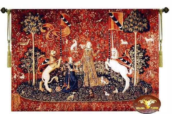 - 西洋美術 (味覚)貴婦人と一角獣(ユニコーン)の中世アートジャガード織 壁掛けタペストリーインテリア輸入品