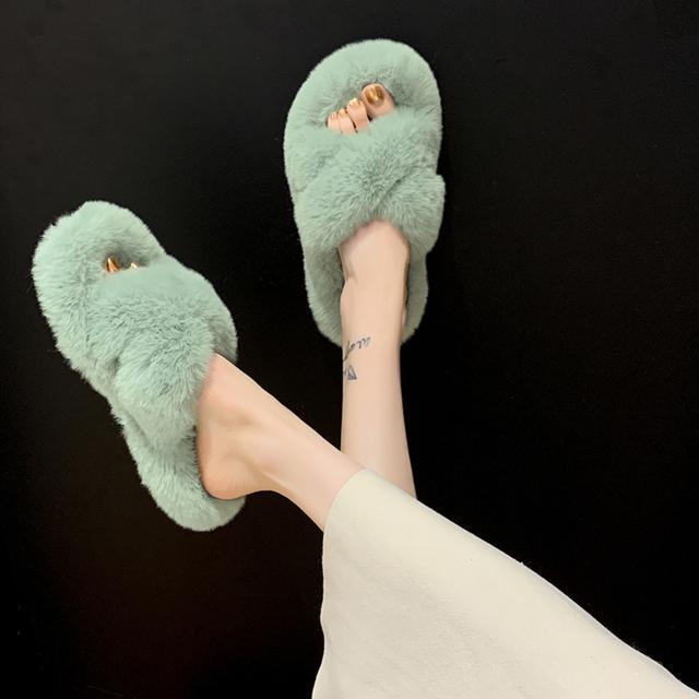 - ☆ ライトブルー ☆ 23.5CM(37) スリッパ おしゃれ 冬用 通販 ルームシューズ 冬 フェイク ファー レディース もこもこ あったか 大人