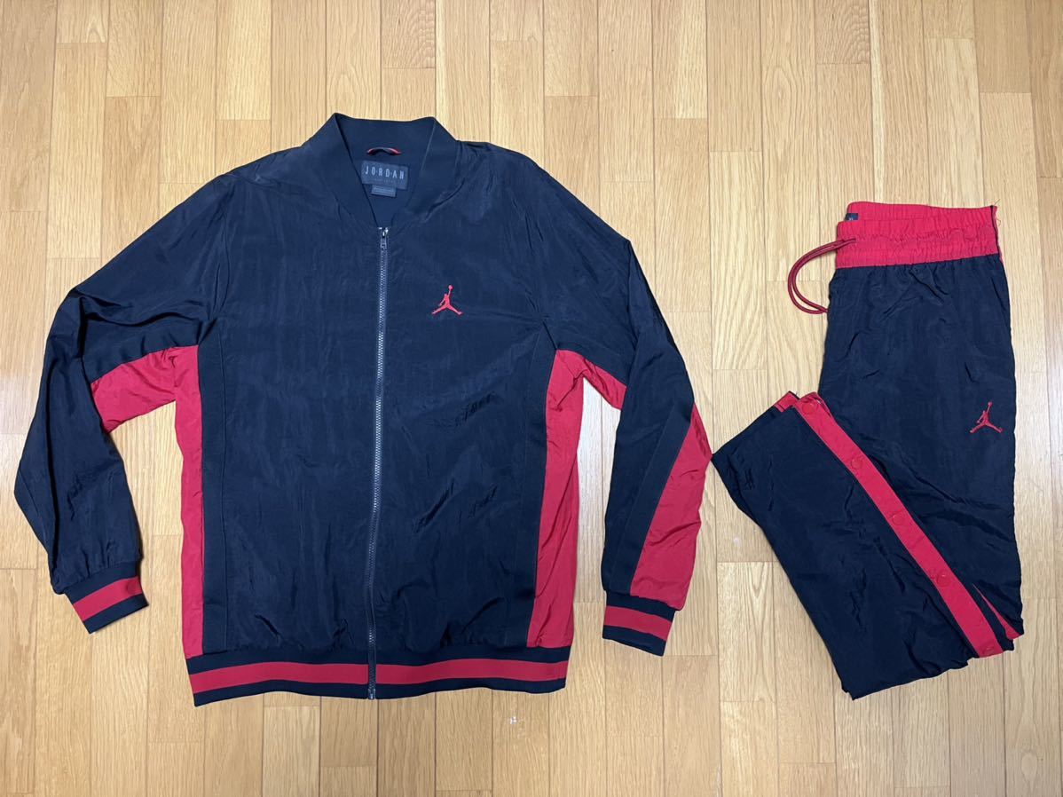 > JORDAN ジョーダンNIKE ナイキ セットアップ 黒 赤 レア NBA Bulls ブルズ バスケ ナイロンジャケット ユニフォーム ジャージ L