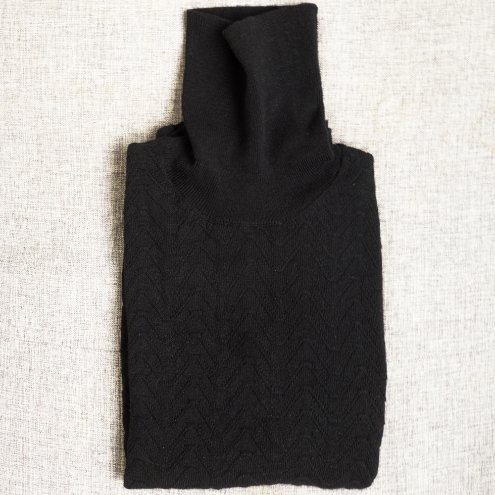 - 新品★ DRUMOHR シェブロン柄 ウール カシミヤ タートルネック ニット 46 ブラック 送料込 メンズ カシミア イタリア製 ドルモア