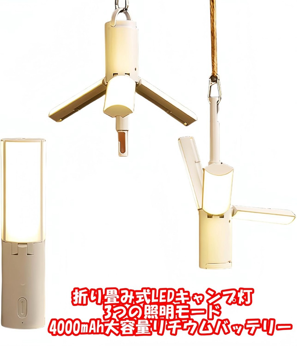 - 折り畳み式LEDキャンプ用灯 3つの照明モード 3in1多機能キャンプライト LEDランタン 4000mAh大容量 360°全周照明 充電式 IP44防滴防塵仕様