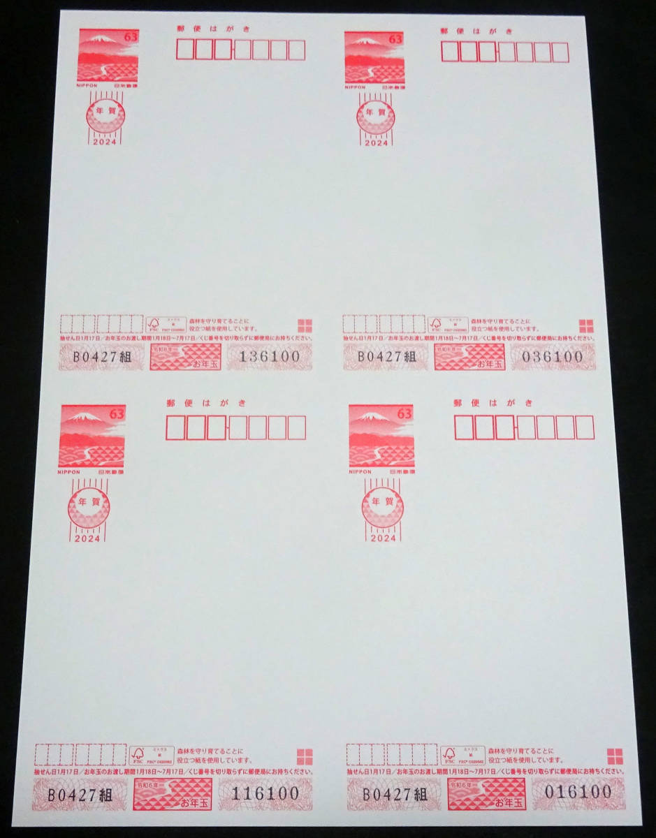 22524A7◆複数出品◆2024年用 通常63円4面連刷★年賀はがき 令和6年用