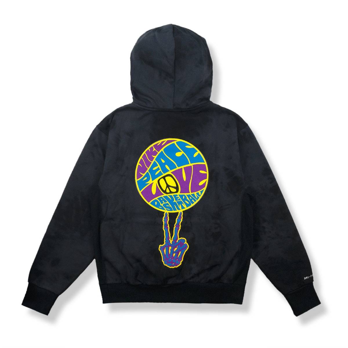 > ■ナイキ ハードウッド ダイ プルオーバー フーディ ブラック 新品 サイズL NIKE HARDWOOD DYE PO HOODIE Peace Love タイダイ CU3618-010