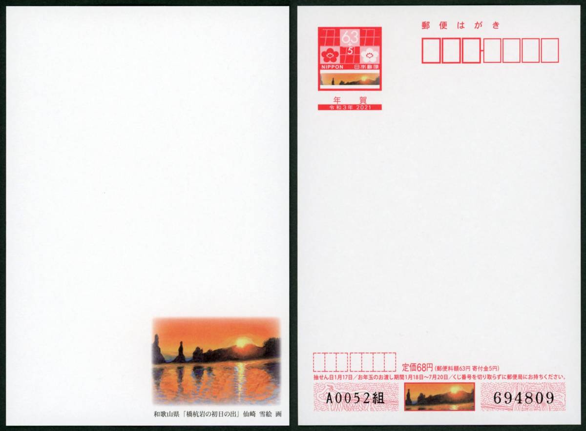 19412A4◆複数出品◆2021年用 橋杭岩の初日の出63円★絵入り年賀はがき 和歌山県 串本 令和3年用