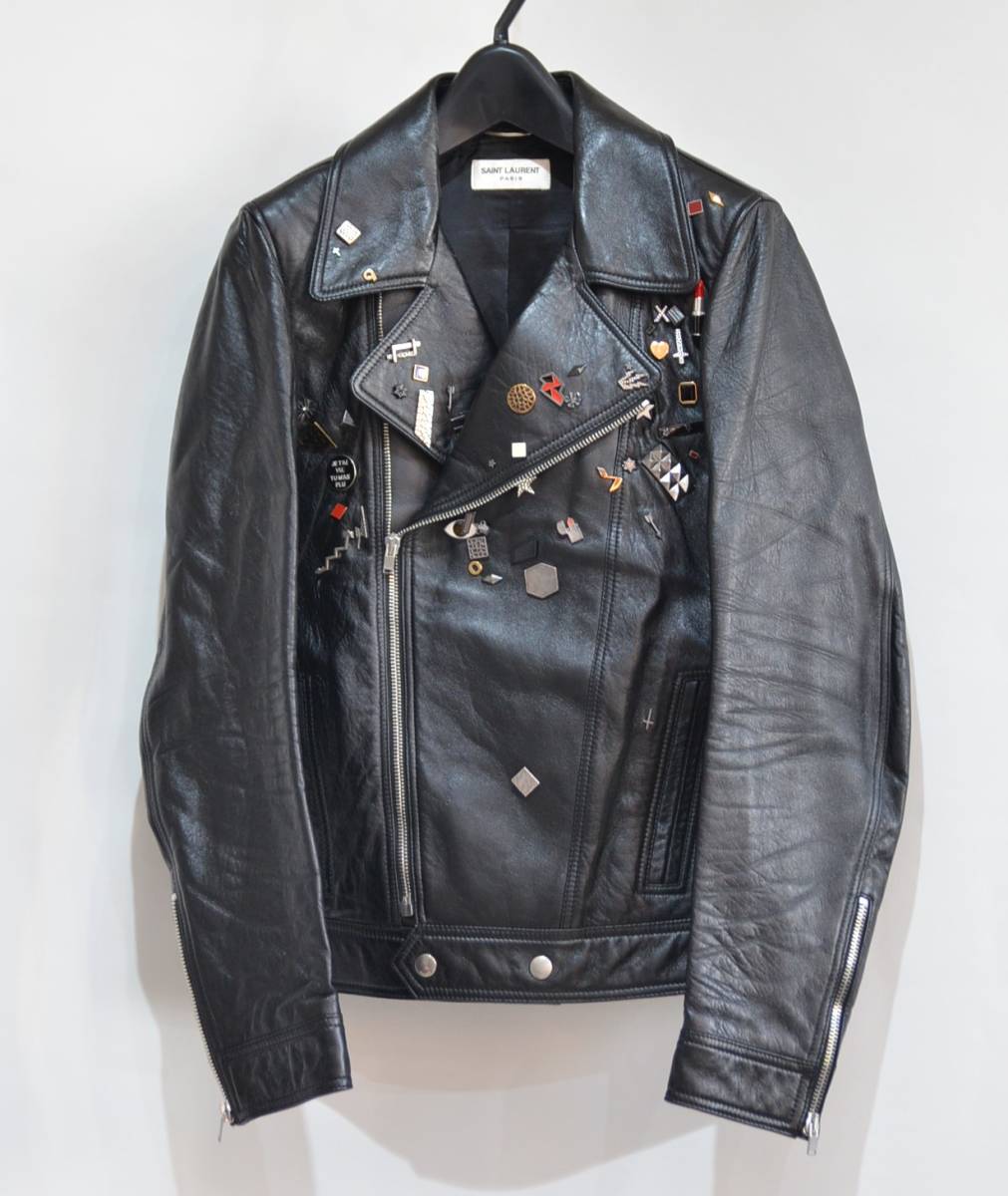 > 希少 15AW SAINT LAURENT PARIS サンローランパリ ピンバッジ レザー ライダース ジャケット ピンズ 46
