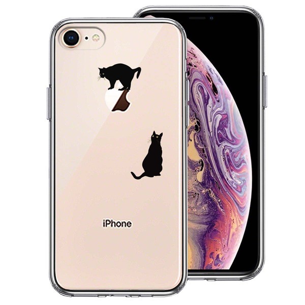- iPhone8 ケース クリア 猫 りんご制覇 いいな スマホケース 側面ソフト 背面ハード ハイブリッド