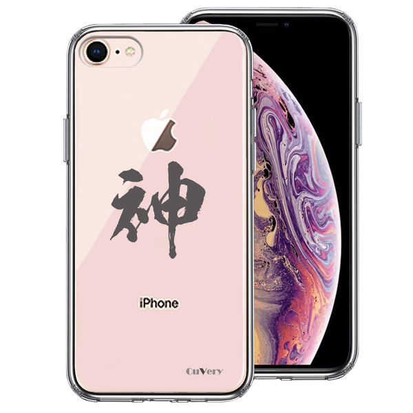 - iPhone7 iPhone8 ケース クリア シェル 漢字 文字 神 グレー スマホケース 側面ソフト 背面ハード ハイブリッド
