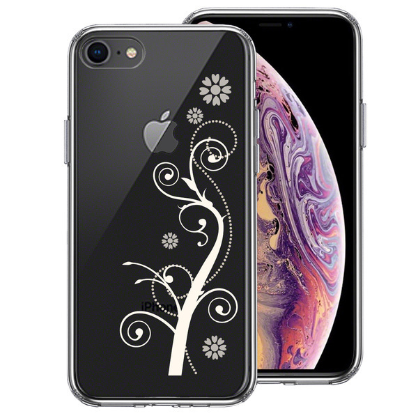 - iPhone7 iPhone8 ケース クリア フローラル つる模様 ホワイト スマホケース 側面ソフト 背面ハード ハイブリッド