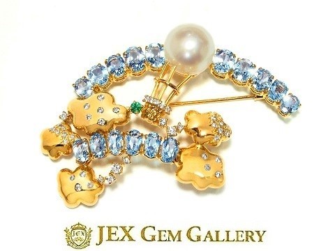 - TASAKI タサキ K18白蝶パール アクアマリン ダイヤモンド エメラルドブローチ(No.44672-B)