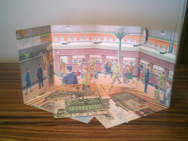 - 柴野民三・文、上野三郎・画『機関車ノシュッパツ』春江堂 昭和19年初版 パノラマ絵本