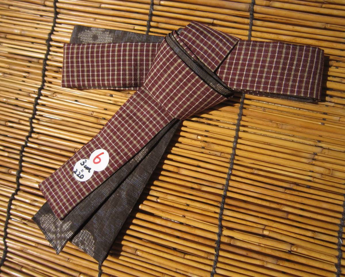 - ◇◆正絹・古布 茶泥系大島×臙脂の細かい格子紬 リメイク タスキ掛け紐6 オリジナル