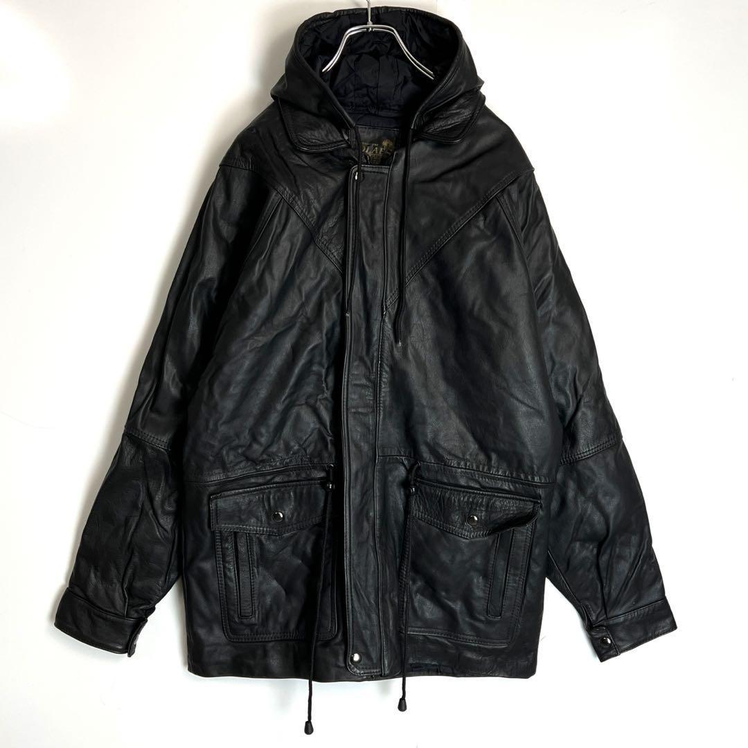 - メキシコ製牛革OLAESヴィンテージ本柄リアルレザージャケットコート黒ブラック