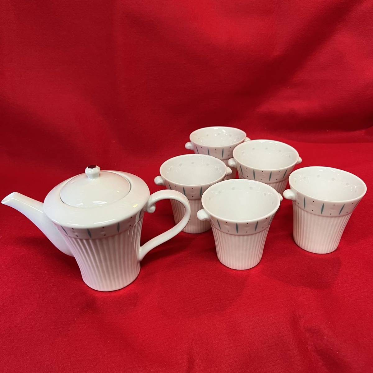 > ☆未使用品☆ GINZA DIAMOND SHIRAISHI ALIOS ティーポット カップ5客 セット 箱付 ネット付 銀座ダイヤモンドシライシ (01206F