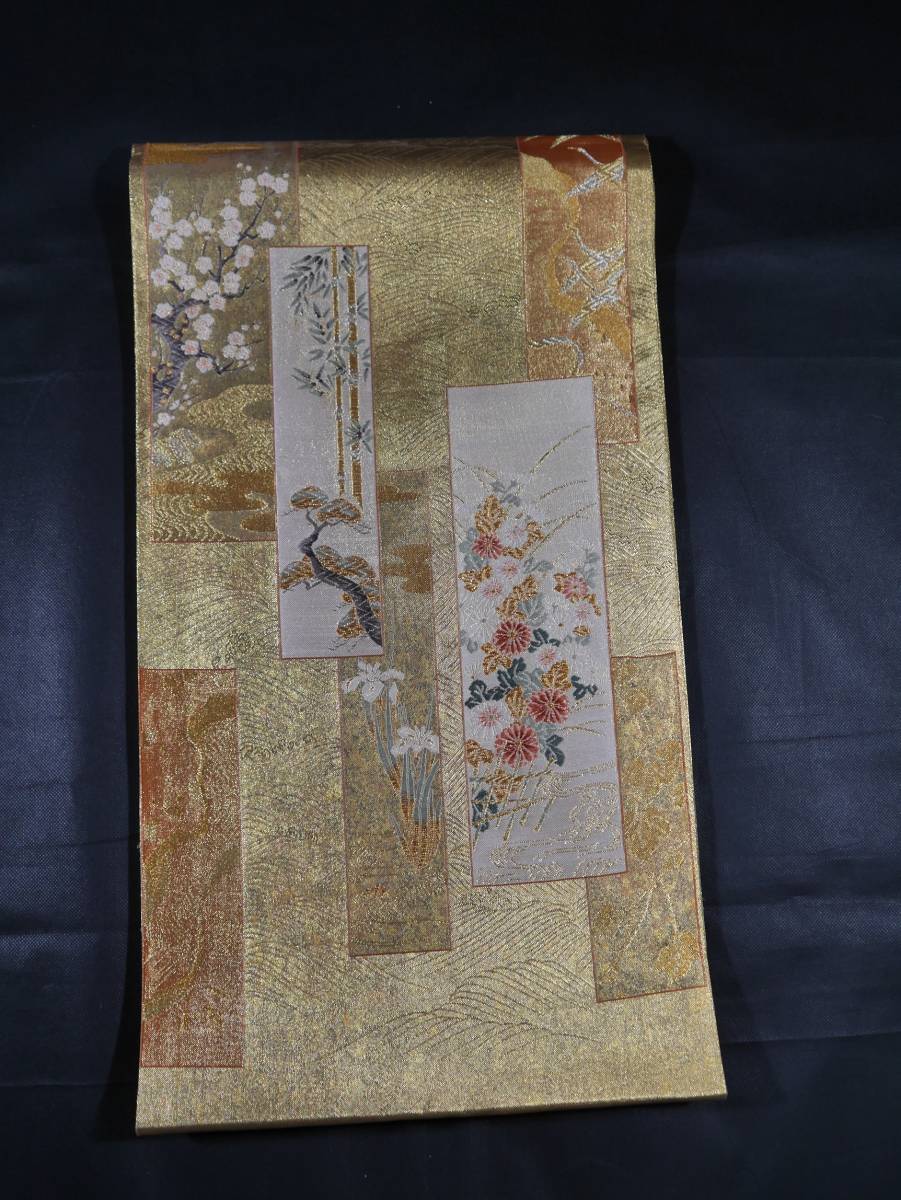 - 未仕立て新品 西陣織最高級袋帯 山下織物 琳派短冊文 引箔金地 六通総柄 正絹 お仕立て代込み 送料無料