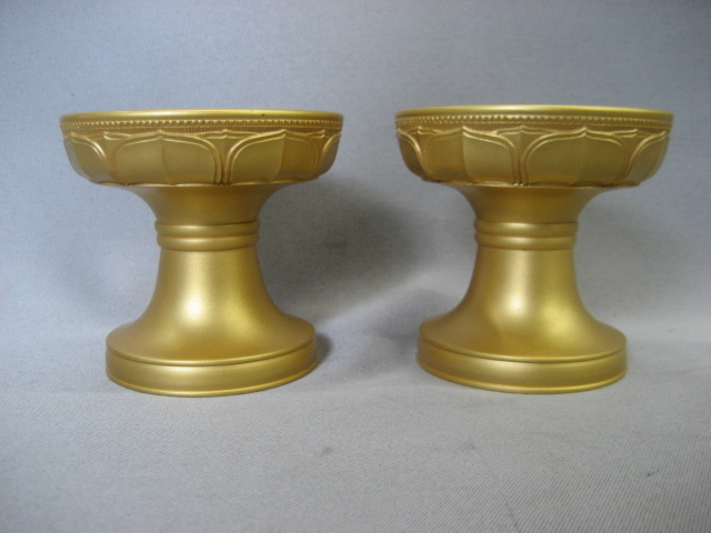 > 【仏具】仏器 鋤(スキ)彫り 消しメッキ仕上げ 1対(2本) 真鍮製 京都製 高さ約8.2cm(大サイズ) 寺院仏具 密教法具 No199