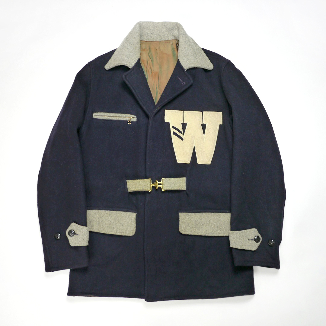 > 40s ビンテージ ウール メルトン ツートン スポーツ ジャケット ワッペン カレッジ ワーク コート スポジャケ ダークネイビー 濃紺 古着