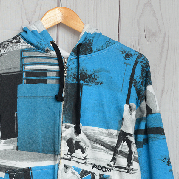 > AD952 ボルコム VOLCOM パーカー S 肩51 フード スケートボード 総柄 厚手 メール便不可 xq