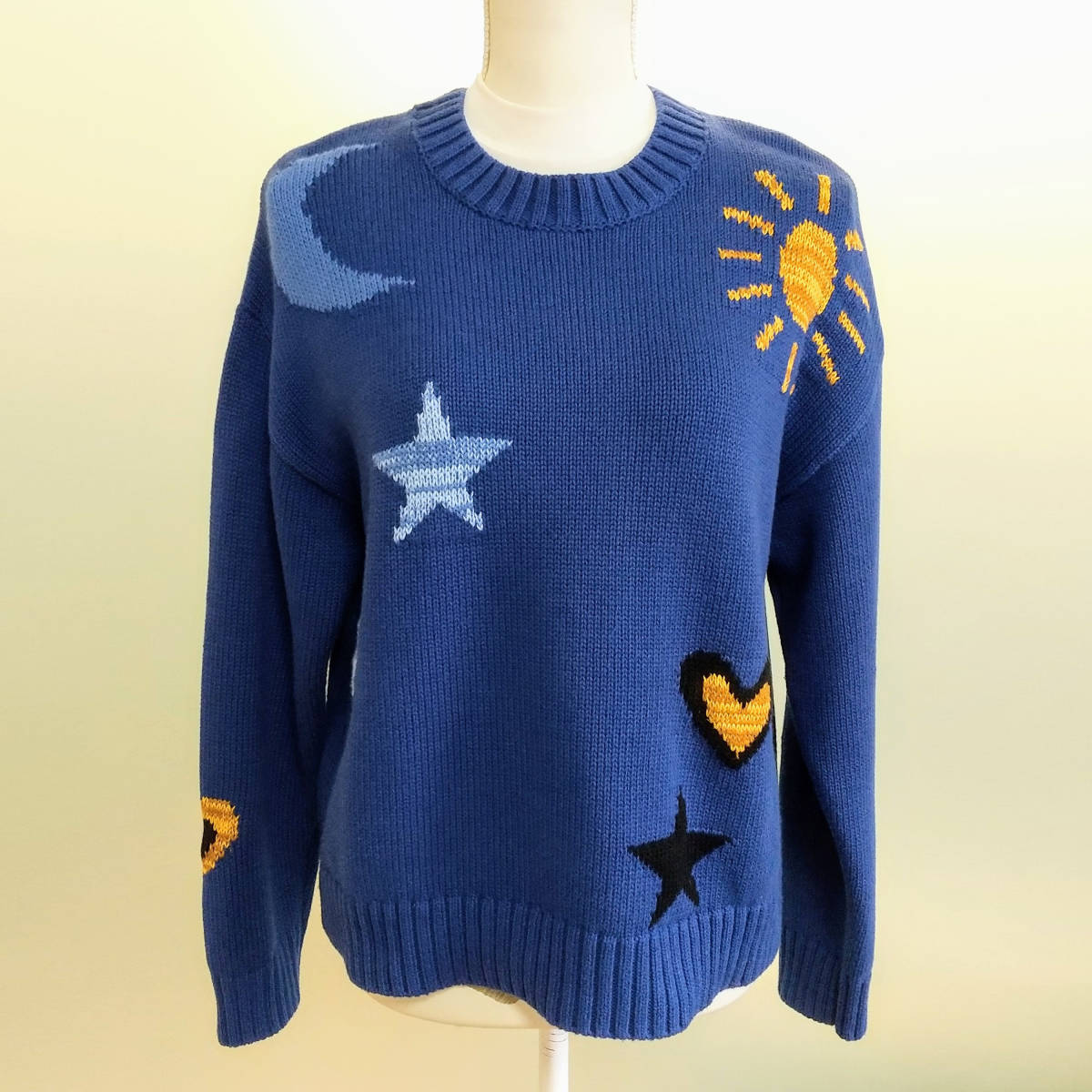 - ☆衣類☆コットンセーター・ブルー・M☆中古
