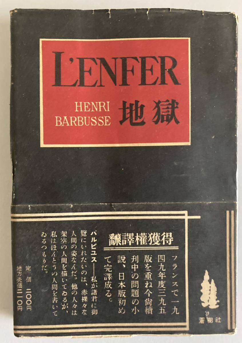 - アンリ・バルビュス 地獄 L'ENFER 蒼樹社 昭和25年帯付 訳 小牧近江 Henri Barbusse