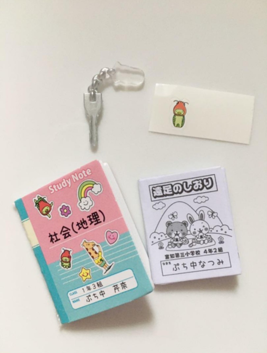 - リーメント re-ment ぷちサンプル ミニチュア バラ売りわたしとCalbee わたしとカルビー Study Note 遠足の 鍵ーとキーホルダー