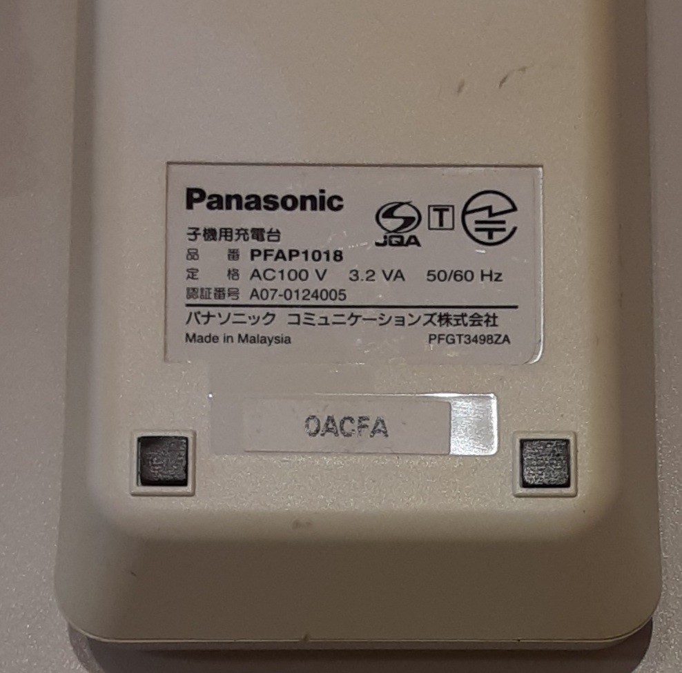 - 【通電未確認】 Panasonic 子機用充電台 PFAP1018 パナソニック 電話機 子機 充電器 充電