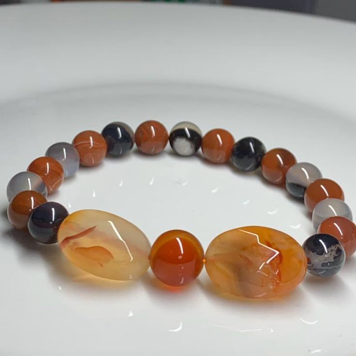 - 天然石★赤瑪瑙 カーネリアン デザイン ブレスレット★8mm 16cm