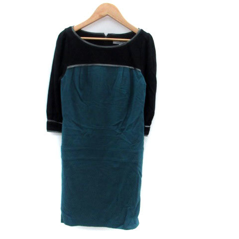- ビアッジョブルー Viaggio Blu ワンピース ラウンドネック 七分袖 ミニ丈 ウール 0 黒 ブラック 青緑 ブルーグリーン /HO40 レディース