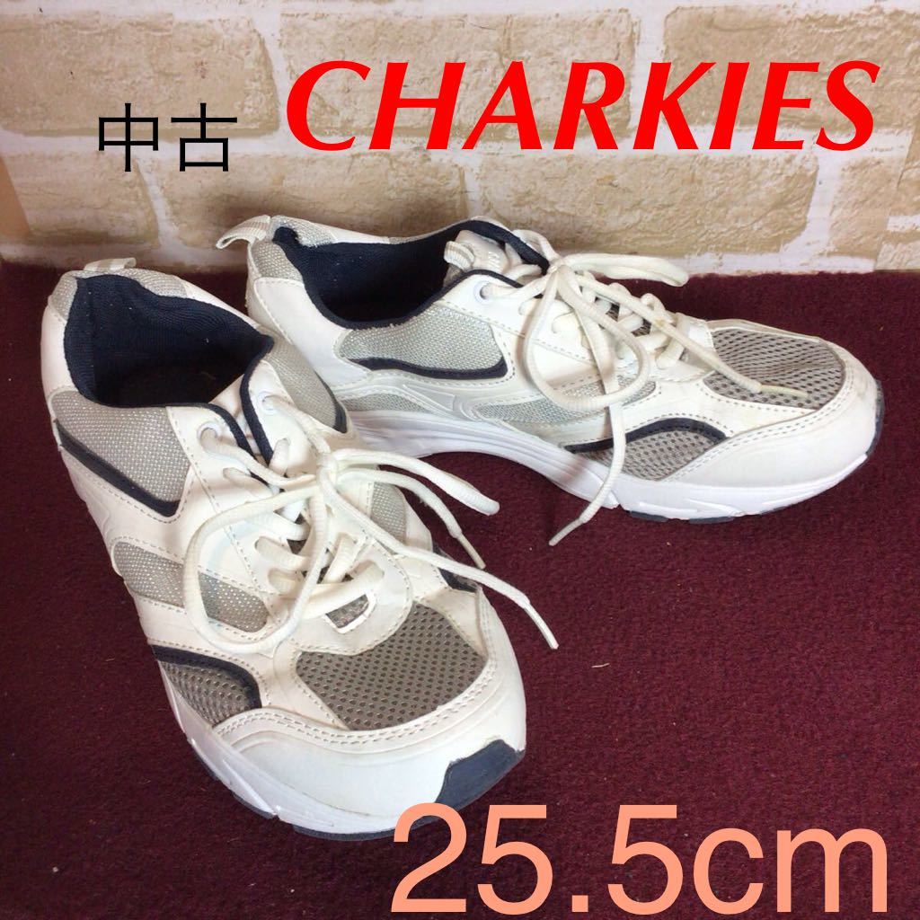 > 【売り切り!送料無料!】A-328 CHARKIES!スニーカー!白!グレー!25.5cm!普段ばき!ウォーキング!散歩!旅行!中古!